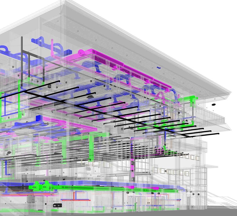 Integrated planning and collaboration of mechanical, electrical, and plumbing systems to ensure seamless installation and functionality during construction.
